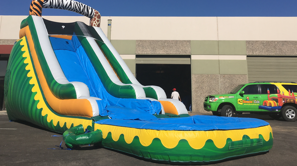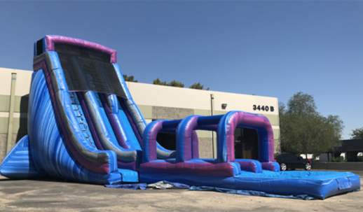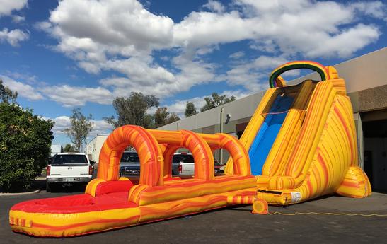 Count on us to provide you and your child with plenty of choices in inflatable waterslide rentals in Phoenix. Our inflatable waterslides range in length from a 13 feet waterslide to a 65-foot double-line, completewith palm trees and arches. Choose from wet slides and dry/wet slides, as well as single and double lanes