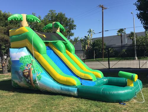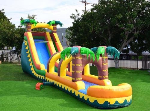 Find bold primary colors, shades of blue, soft pastels and eye-popping brights in our large selection of inflatables waterslide rentals in Phoenix AZ. Or, choose themes that appeal to the children attending your party, such as tropical island,complete with palm trees. All of our inflatable water slides for rent in Phoenix are huge hit for the kids.