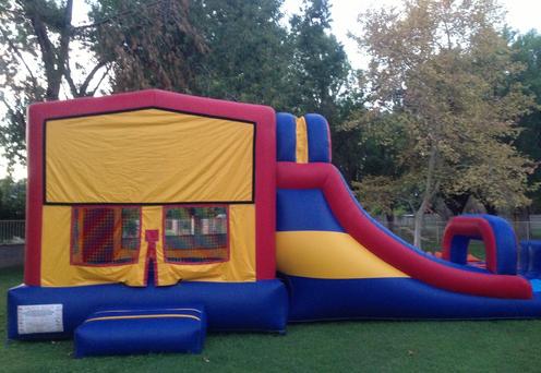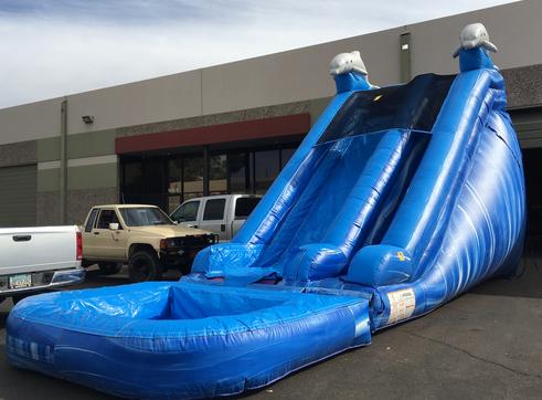 At AZ Bounce 4 Kids in Phoenix Arizona, we offer two types of inflatable waterslides for rent in Phoenix: wet and wet/dry. The wet/dry slides give you the option of using water or not. Both are fun and safe. The choice is up to you. Consider your children's quests and the time of year before making a final decision.